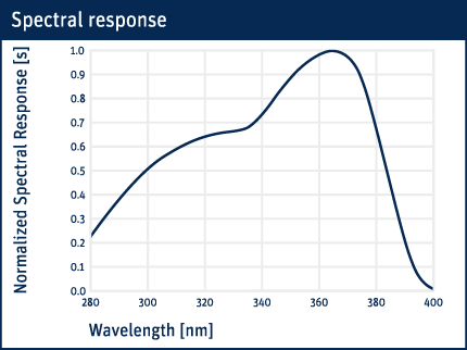 CUV5不適用于測量特定的紫外光譜范圍,例如UVA、UVB或UVE/UX指數(shù)。如需測量這些個別參數(shù),則需使用我們的UVS系列產(chǎn)品。